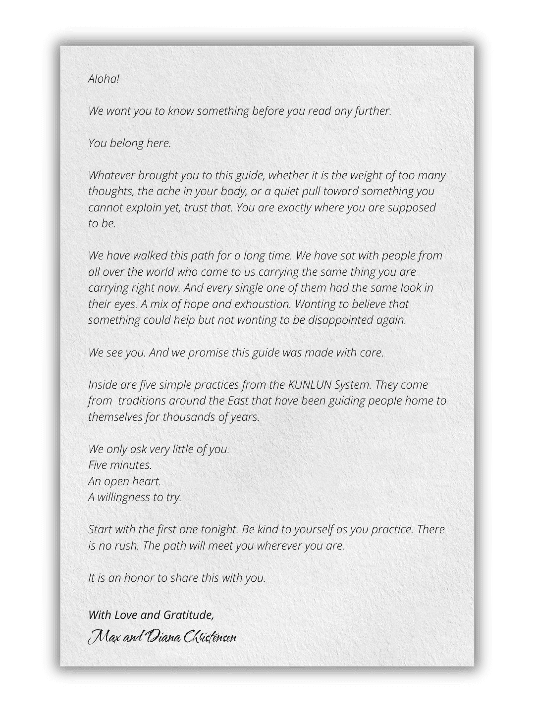 Message from Max and Diana Christensen